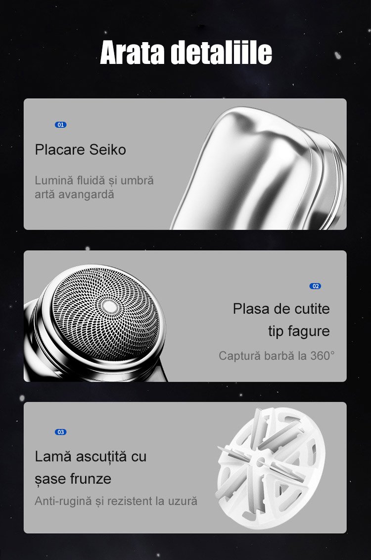 Aparat de ras electric portabil, rezistent la apa, lavabil